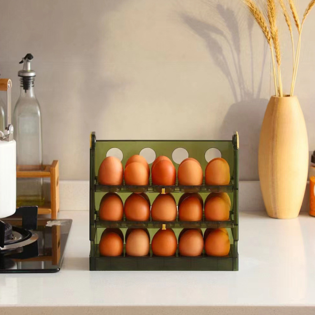 Keep your kitchen well organised with the Multi-Layer Egg Rack. If you’re tired of having a cluttered place to store your eggs and looking for a practical solution that will save you some space and add a touch of class to your kitchen, then look no further! Our multi-layer egg holder is perfect for keeping your eggs fresh, easy to access, and beautifully organized.